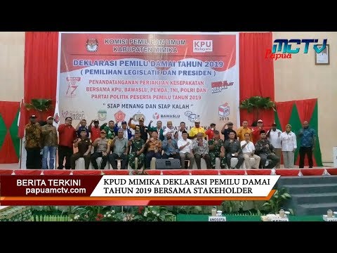 Penandatanganan perjanjian kesepakatan deklarasi pemilu damai tahun 2019 dalam rangka memilih anggota legislatif dan presiden dikabupaten mimika/ dilakukan dan disepakati bersama kpud mimika/ bawaslu mimika/ pemda mimika/ tni polri / tokoh agama/tokoh masyarakat / tokoh adat/ tokoh pemuda/ bersama 16 partai politik peserta pemilu tahun 2019