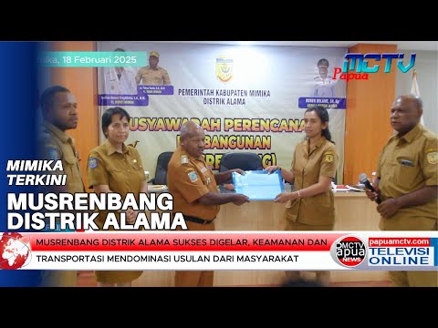 Timika, papuamctv.com - Sebanyak 120 sub kegiatan usulan program melalui musrenbang tingkat kampung maupun kelurahan yang ada di Distrik Alama dihasilkan pada Musrenbang Tingkat Distrik yang dilaksanakan di Ruang Otomona Hotel Grand Tembaga Timika pada, Selasa 18 Februari 2025.
