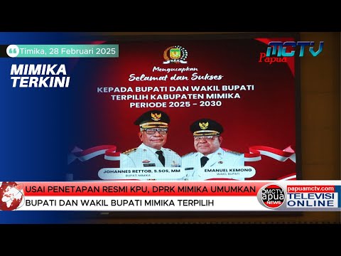 Timika, papuamctv.com - Dewan Perwakilan Rakyat Kabupaten (DPRK) Mimika menggelar sidang paripurna dengan agenda pengumuman penetapan pasangan calon Bupati dan Wakil Bupati terpilih, yang berlangsung di Ruang Rapat Paripurna DPRK Mimika, Jumat 28 Februari 2025.