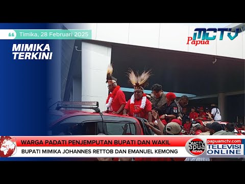Timika, papuamctv.com - Antusias warga timika menjemput Bupati dan Wakil Bupati Mimika, Johannes Rettob Dan Emanuel Kemong, di bandara Moses Kilangin kabupaten mimika provinsi papua tengah pada, jumat 28 Febuari 2025.