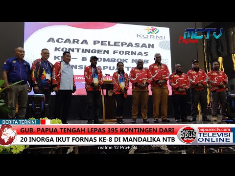 395 Kontingen Provinsi Papua Tengah yang akan berlaga di ajang Festifal Olahraga Rekreasi Nasional (FORNAS) ke-8, di lepas Gubernur Papua Meki Fritz Nawipa didampingi Bupati Mimika Johannes Rettob sekaligus sebagai Ketua FORMI Papua Tengah, Bupati Paniai dan Bupati Deiyai, pada Selasa (22/7/2025) di Graha Eme Neme Yauware Mimika.